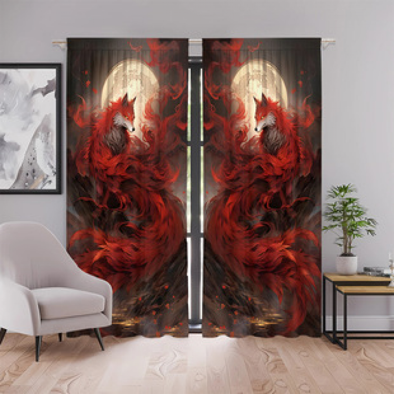 2pcs new manufacturer supplies cross-border Firefox series 3D digital printed fabric curtains and window screens
