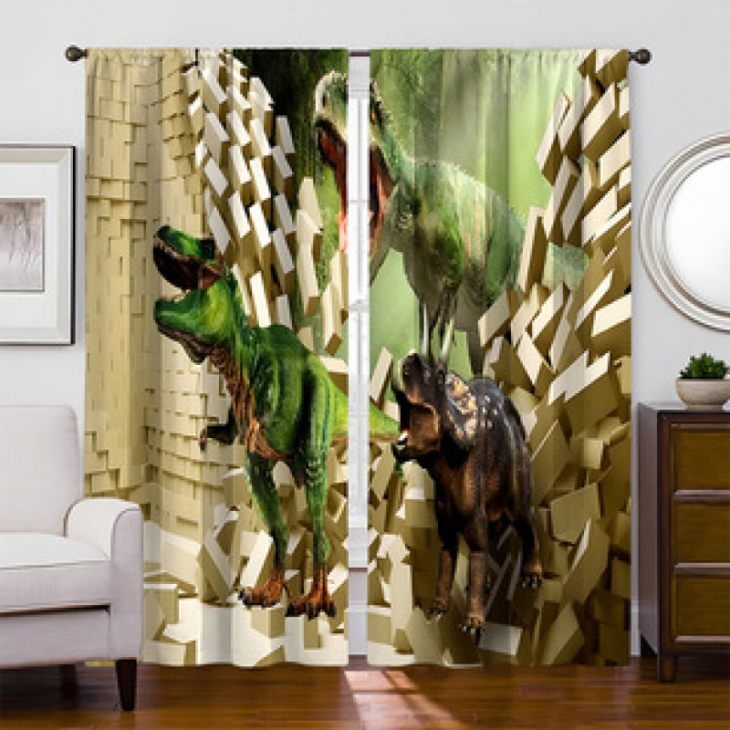 2pcs new Tyrannosaurus rex pattern cross-border manufacturer supplies high-precision digital printed curtains for living rooms and bedrooms