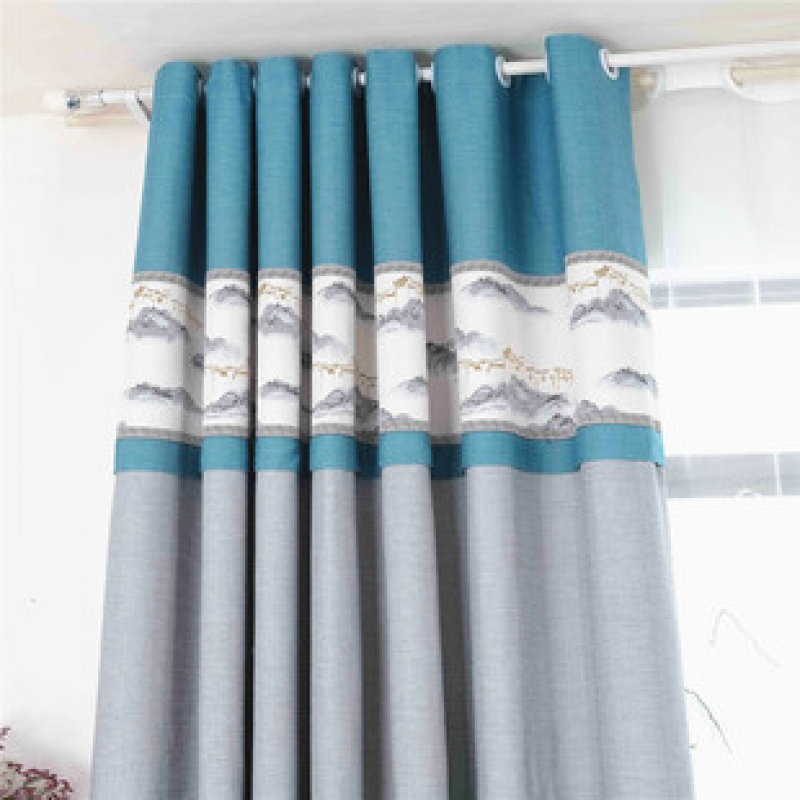 Chinese style curtains, bedroom with thickened landscape, high shading relief embroidery, bedroom, living room, swan linen, Chinese style