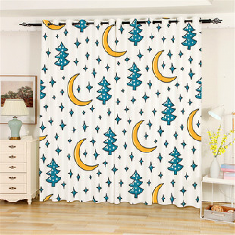 Christmas living room bedroom bay windows, floor to ceiling non perforated blackout curtains, digital printed children's Christmas limited edition