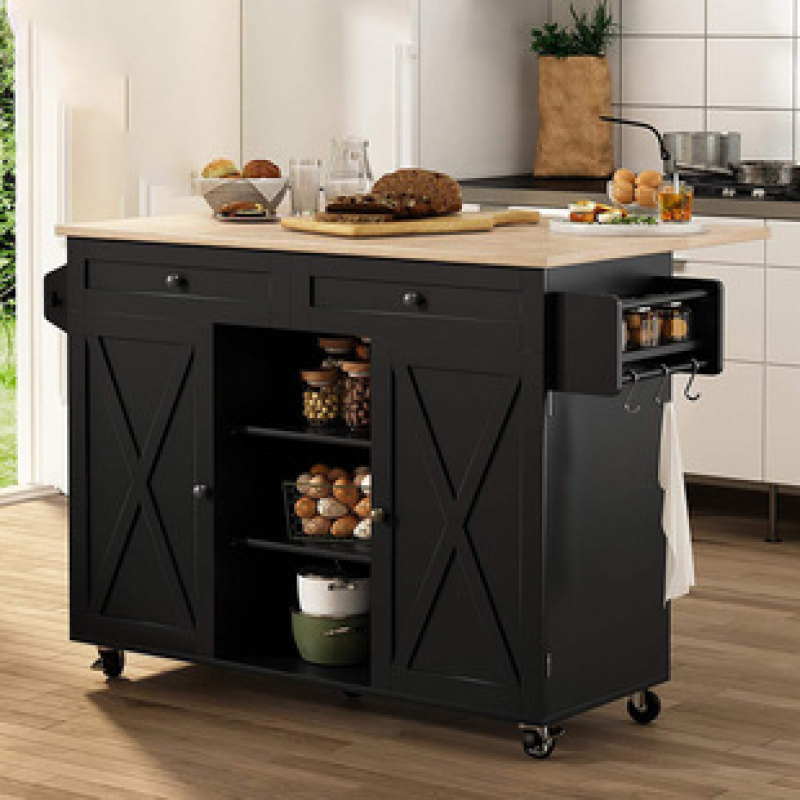 Amazon cross-border manufacturer direct sales dining cabinet, kitchen mobile island table, restaurant universal wheel cart, American style storage cabinet