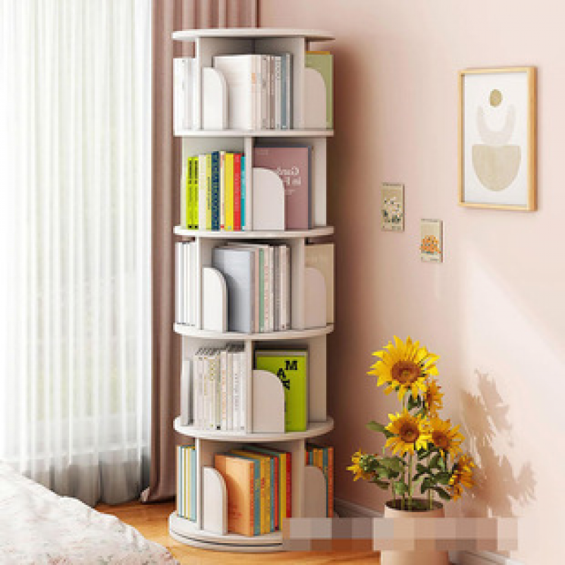 360 degree rotating bookshelf for home living room, movable floor standing storage rack, simple and durable picture book rack, wall mounted bookshelf