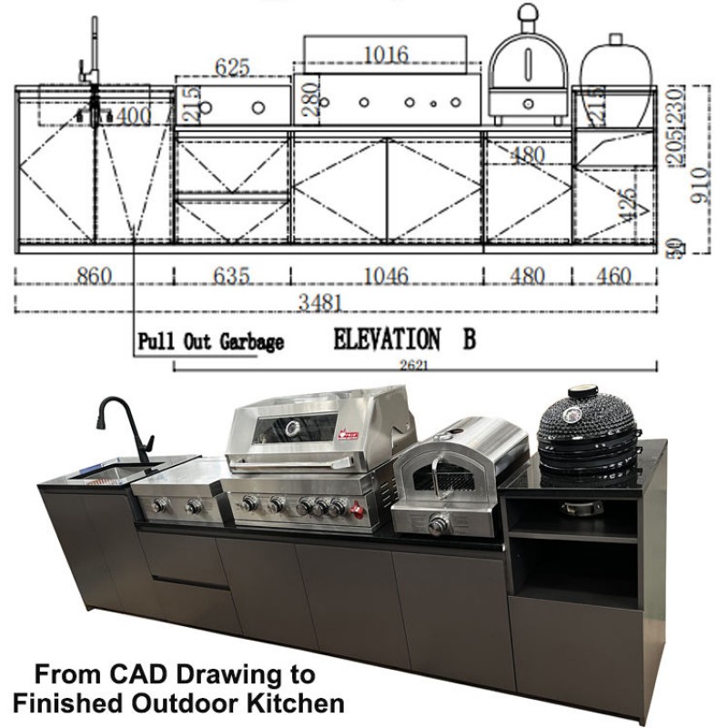 Outdoor Kitchen for Grill Pizza Oven Garden Furniture Set Black Stainless Steel Outdoor Bbq Corner Kitchen Cabinet with Sink