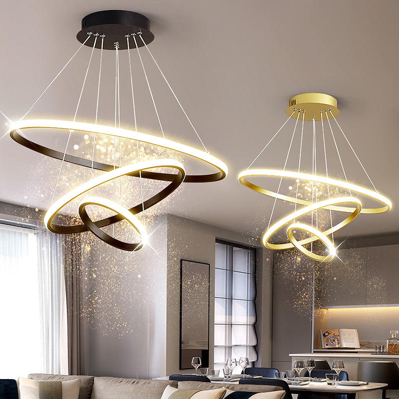 Modern Gold Luxury LED Acrylic Chandelier Home Decorative 3-Ring Hanging Pendant Light for Living Room or Hotel New Design