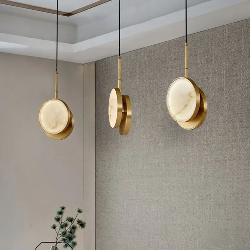 Wholesale Custom Linear Bedroom LED Pendant Light Nordic Luxury Alabaster Brass Lamp Stone Shade Hotels Luxury Interiors