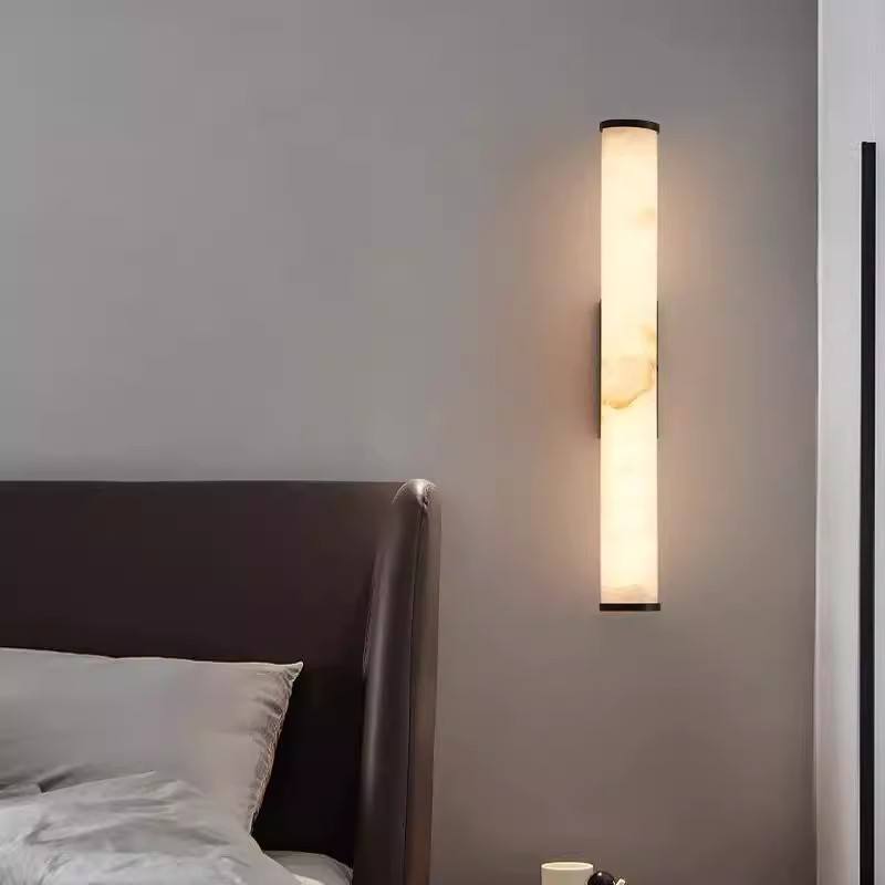 Modern Villa Living Room Background Wall Lamp Spanish Natural Marble Full Copper High-End Bedside Wall Lamp Home Office Recessed