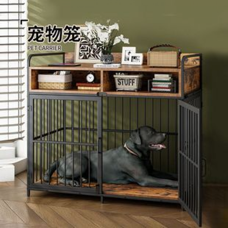 Cross border factory direct sales home steel wood round tube dog cage thickened, bite resistant, sturdy, durable, movable pet cage for storage
