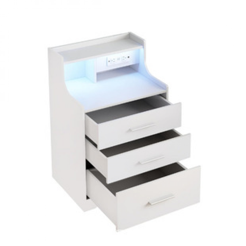 Cross border manufacturer direct sales home with three pull LED multifunctional bedside table Amazon hot selling foreign trade bedside table