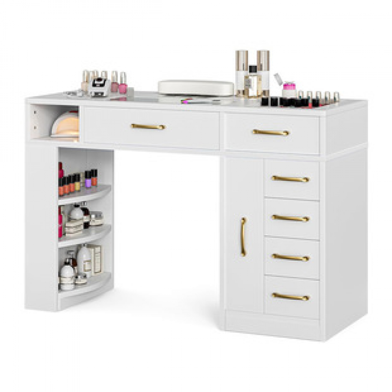 Export Amazon multifunctional white nail table with high-end design and storage capacity. Foreign trade hot selling panel nail table