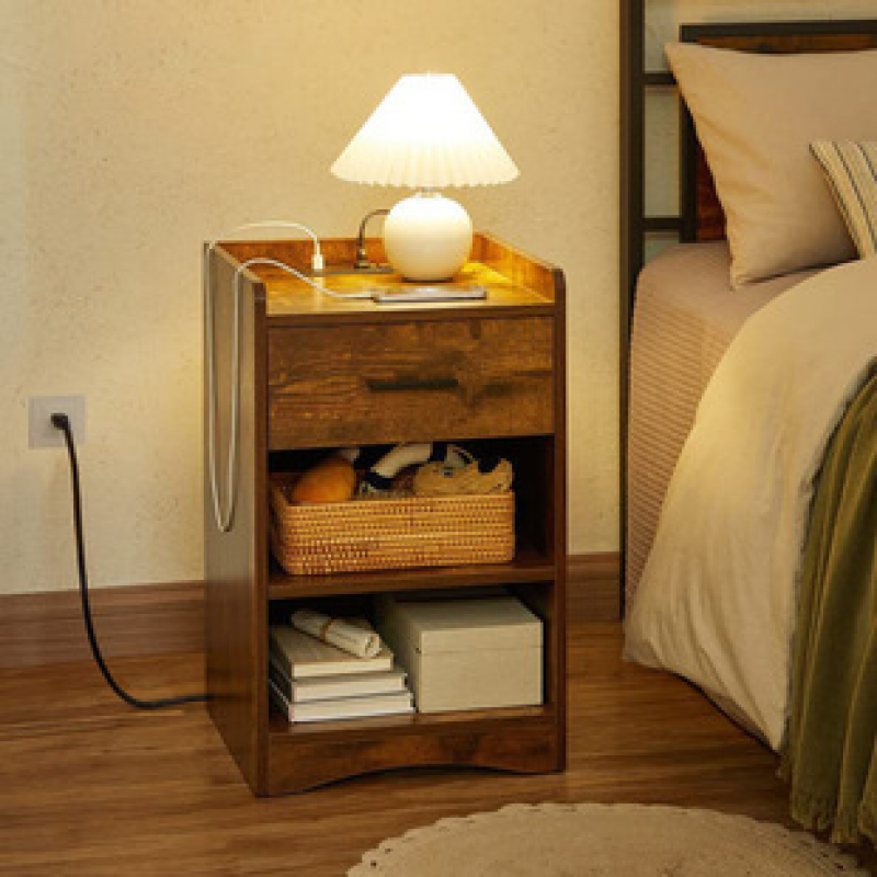 Simple bedroom storage cabinet, bedside cabinet with socket, living room, study, file cabinet, factory direct sales bedside table