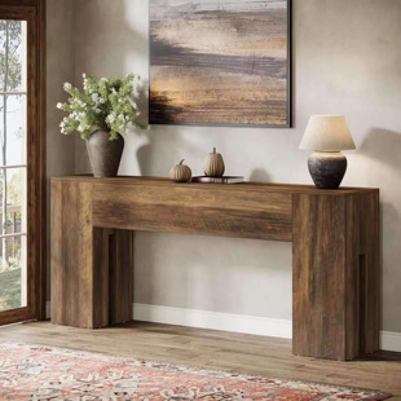 Middle ancient style foyer, solid wood entrance, homestay living room decoration, narrow side cabinet, wabi sabi retro sofa, wall mounted banner case