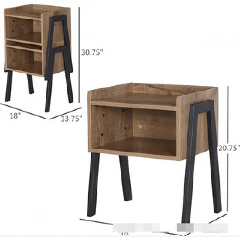 Cross border applicable to living room, bedroom, bedside table 2-piece set with steel legs and open shelves stackable coffee table