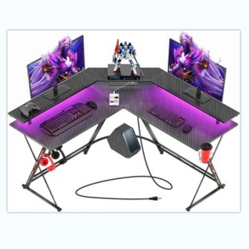 L-shaped RGB gaming table with socket, simple home gaming table, desktop computer desk, writing desk, office desk, trendy