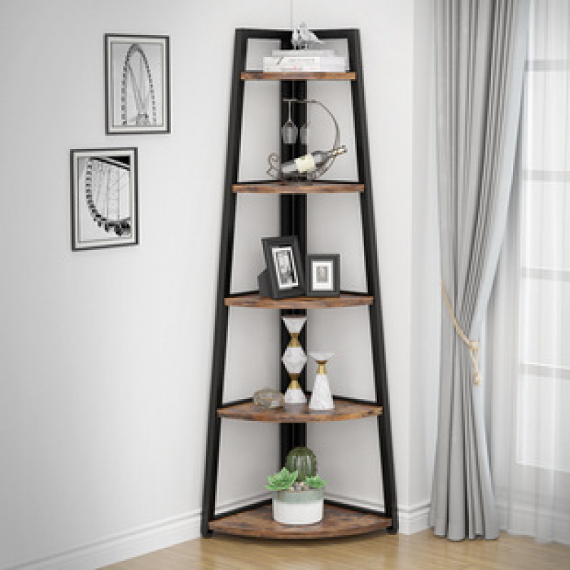 Cross border direct sales corner shelf, multi-layer floor standing bookshelf, home American style rural non perforated industrial style shelf
