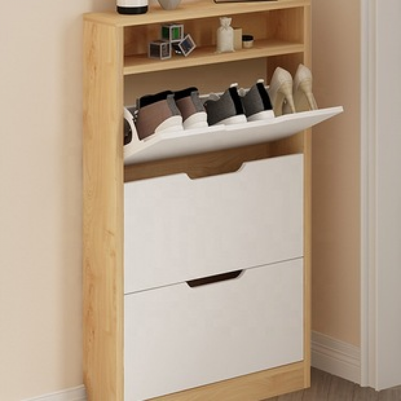 Cross border factory direct sales solid wood particleboard shoe rack household large capacity entrance storage cabinet indoor flip bucket storage cabinet