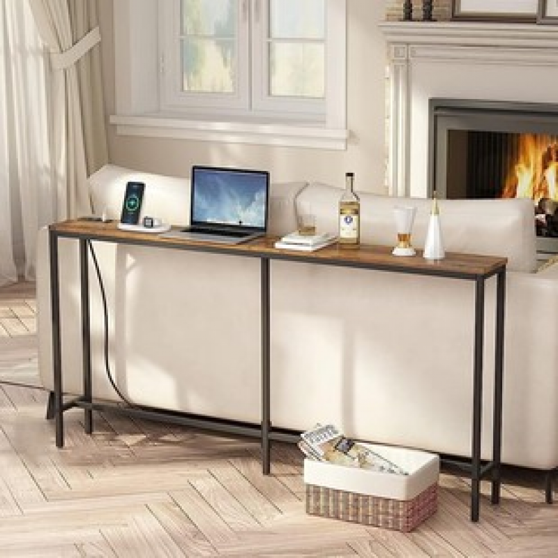 Retro American living room corridor with wall mounted socket entrance table, floor standing storage for home use, sofa side table