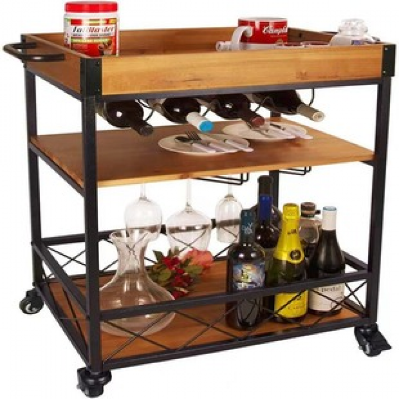 Cross border retro style metal cart storage rack, hand pushed red wine rack, floor standing movable storage rack, kitchen trolley