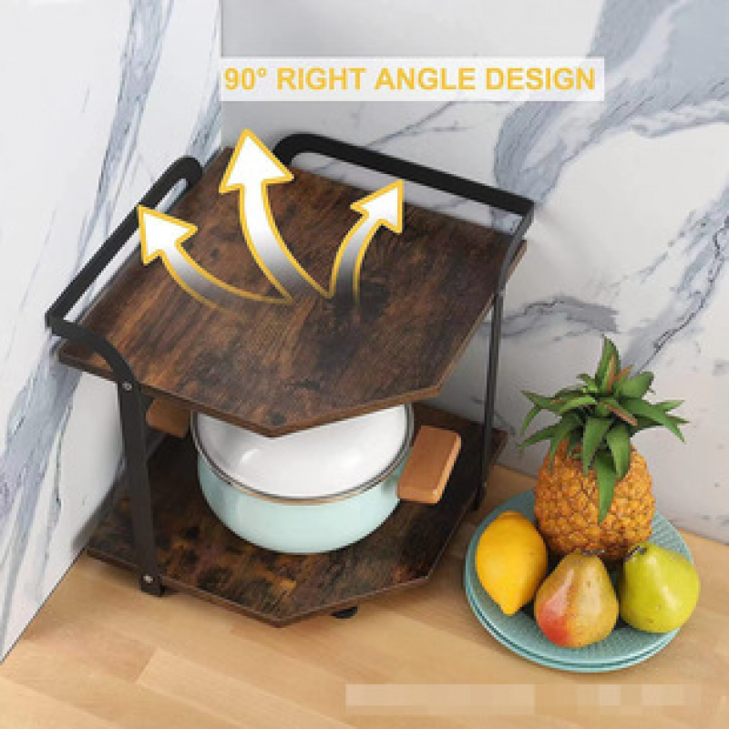 Factory direct sales desktop wrought iron storage rack, double-layer kitchen storage rack, iron wood combined non perforated countertop storage rack