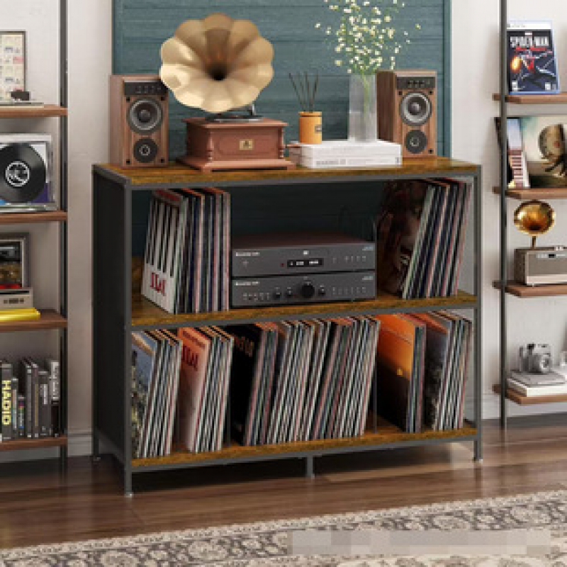 Iron wood combined with Bluetooth bookshelf, multi-layer computer speaker storage rack, wooden desktop card insertion, monitoring, audio and record rack