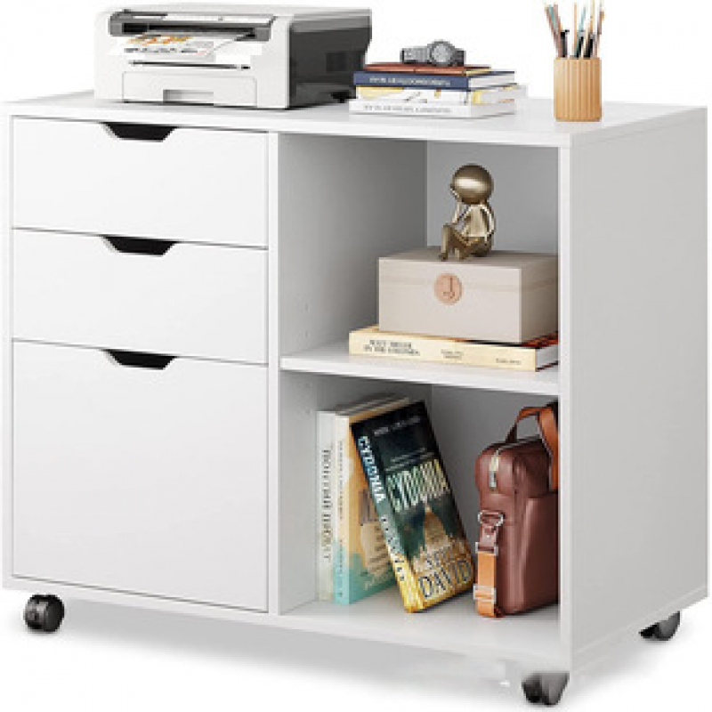 Cross border drawer wooden filing cabinet, mobile office desk, printer stand with open storage rack, factory direct sales