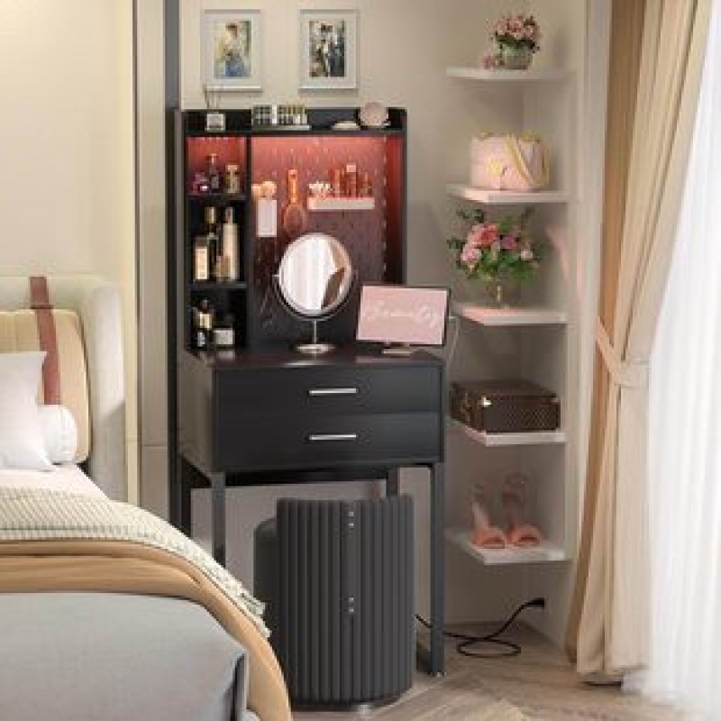Warning: unlink(/www/wwwroot/www.shineplus.com.cn/system/storage/cache/cache.catalog.language.1777342440): No such file or directory in /www/wwwroot/www.shineplus.com.cn/system/library/cache/file.php on line 68Modern minimalist small apartment with lights, dressing table, bedside table, corner storage cabinet, bucket cabinet, perforated board, integrated makeup table