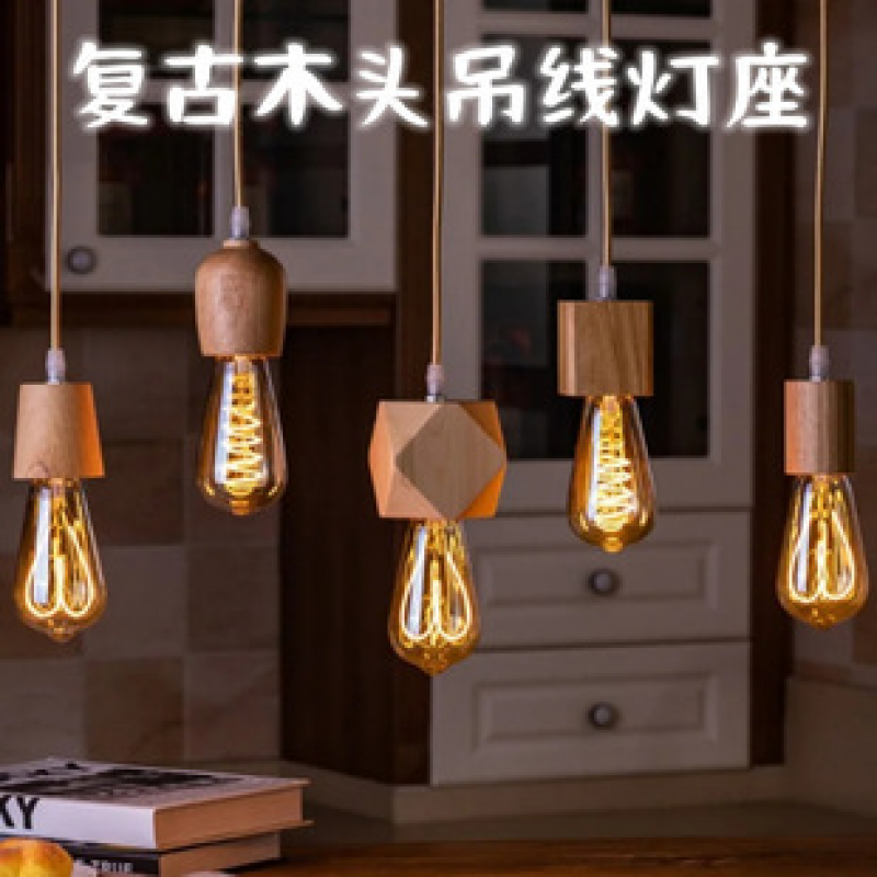 Japanese style tea room wooden hanging line lamp, coffee shop, homestay restaurant, creative E27 screw mouth solid wood lamp holder with wire