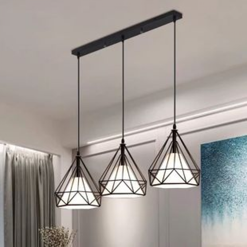 Modern minimalist living room dining room pendant light, ceiling light, personalized and creative dining room diamond wrought iron bar counter three headed pendant light