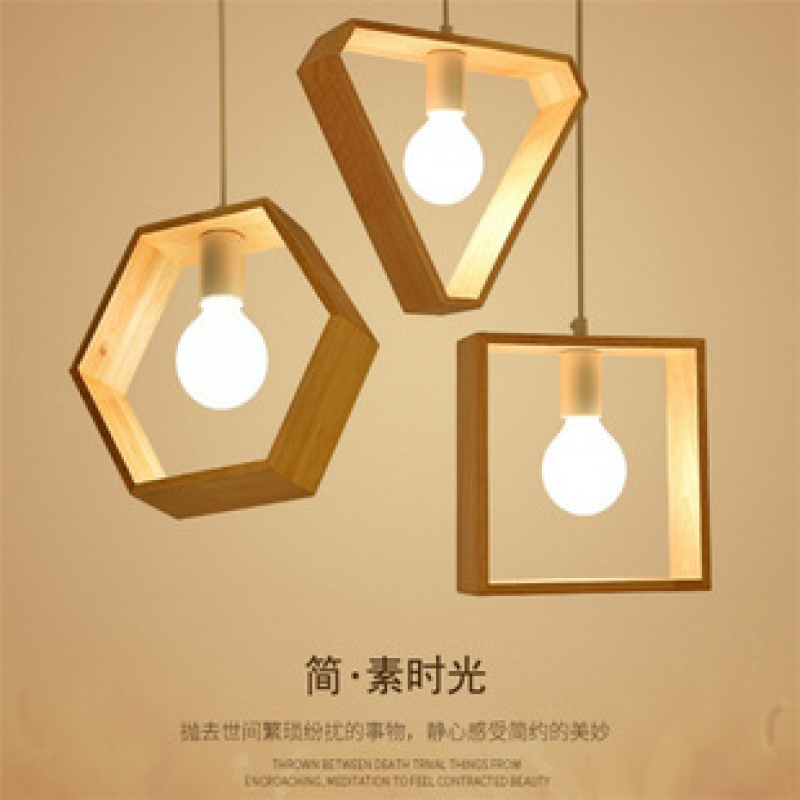 Nordic style bedroom, bedside, dining room, light bar, cozy wooden art lighting, triangular geometric creative pendant lamp