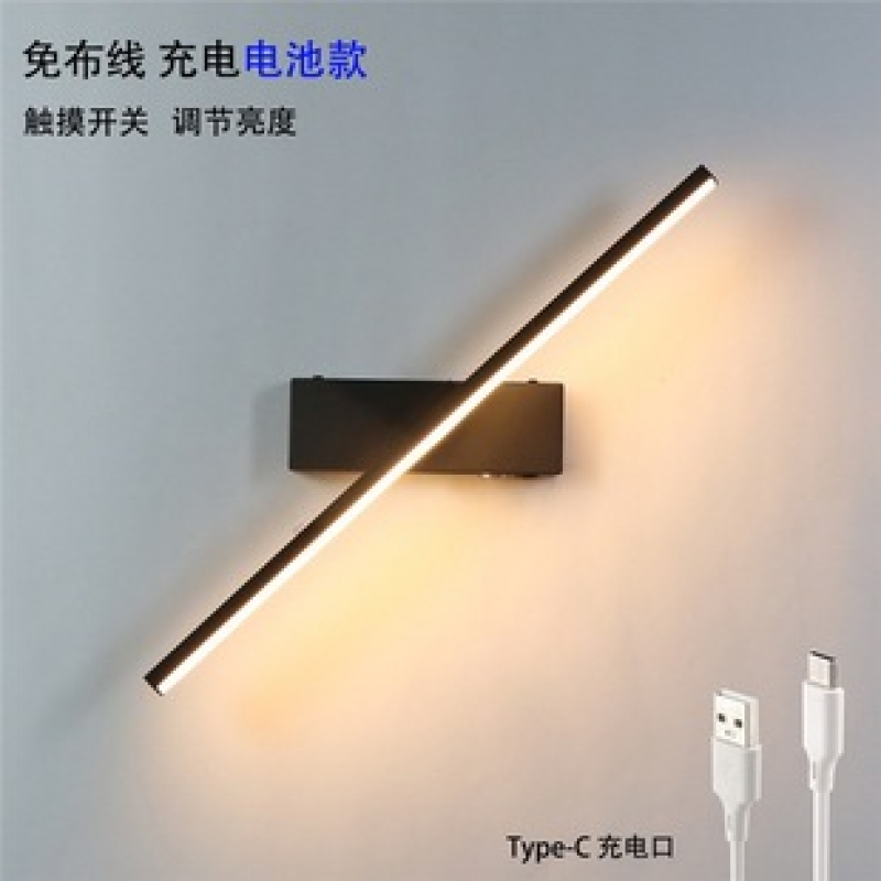 Rechargeable battery powered rotatable straight strip wall lamp, modern minimalist bedside lamp, bedroom study background wall corridor lamp