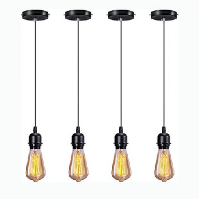 Restaurant pendant light, modern and minimalist wrought iron American style single headed bar lighting, retro industrial style black bedside hanging line light