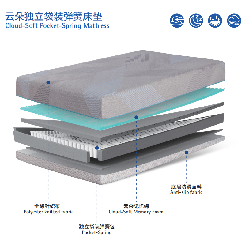 Memory foam slow rebound mattress with adjustable softness and hardness cloud-soft pocket-spring mattress