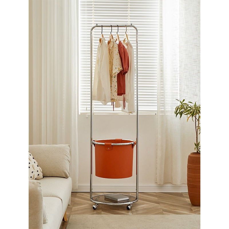 Coat rack designer, antique luxury leather pocket, home-use floor-standing movable coat rack