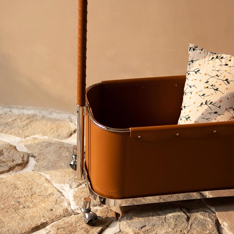 Coat rack designer, antique luxury leather pocket, home-use floor-standing movable coat rack