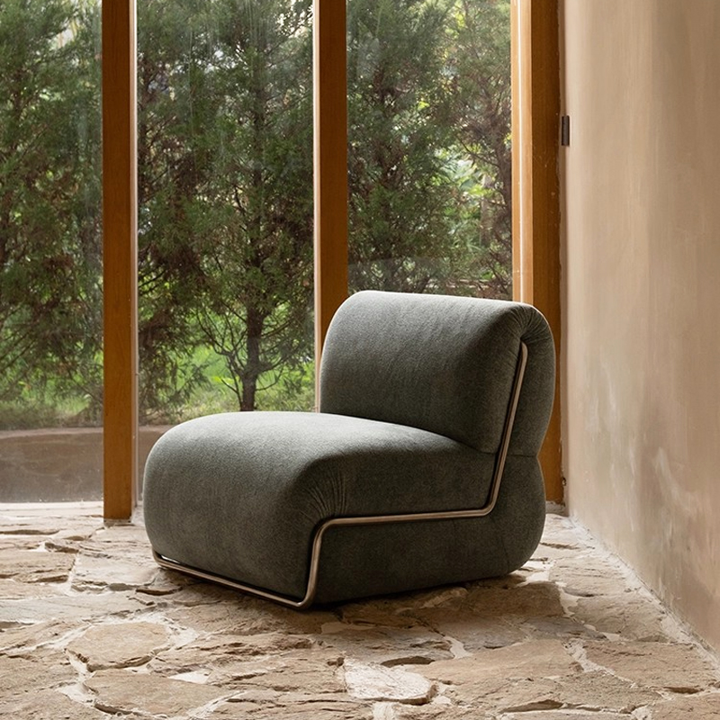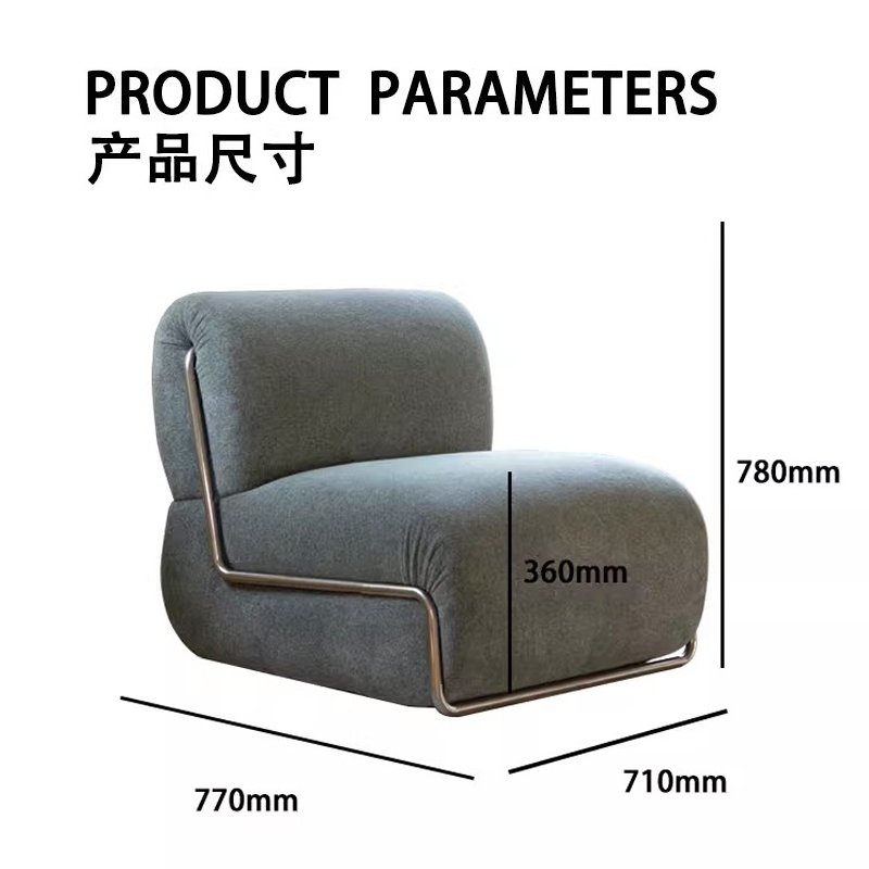 Modular single sofa, stainless steel leisure chair, fabric lazy sofa