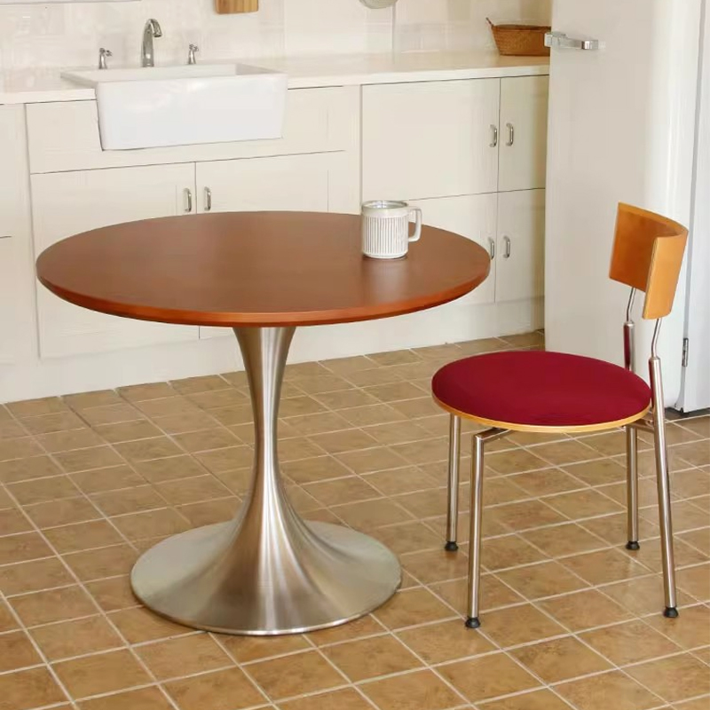 Round solid wood stainless steel luxury round retro dining table and chair set