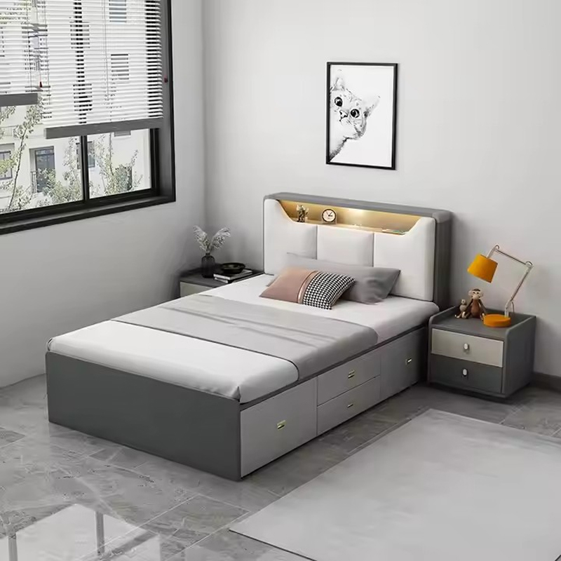 Modern Space Saving Furniture Bedroom Functional Wooded Single Double Storage Twin Wood Beds