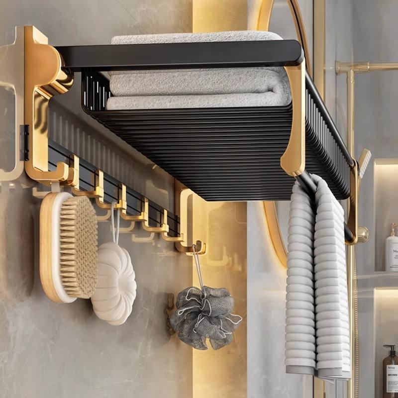 Modern Luxury Black Gold Thickened Bathroom Towel Rack, Hole-Free Bathroom Hardware Hooks, Storage Bathroom Accessories Set