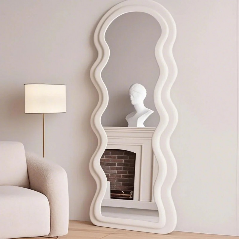 Long Bedroom Living Room Espejo Espelho Big Large Full Body Stand Floor Full Length Wall Long Irregular Shaped Wave Wavy Mirror