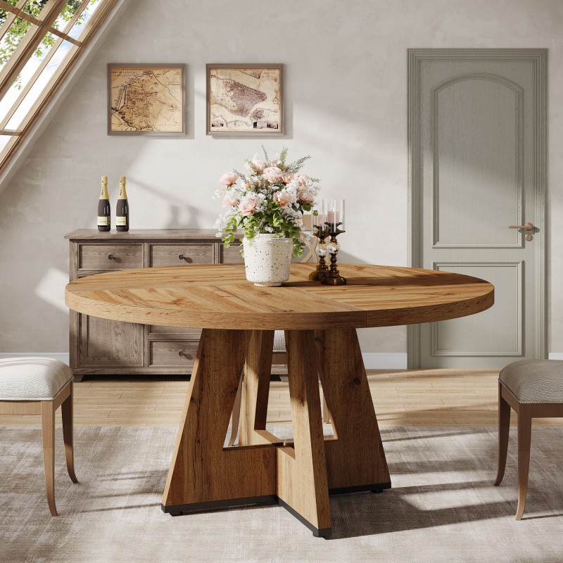 Modern 47-Inch Wooden Pedestal Base Dining Table for 4-6 Round Kitchen & Dining Room Circle Table