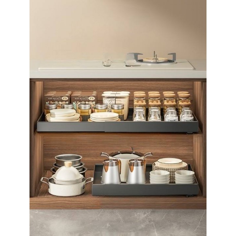 Retractable Pull-Out Basket for Kitchen Cabinets Built-In Storage Rack for Bottle and Storage Box Organizer Accessory