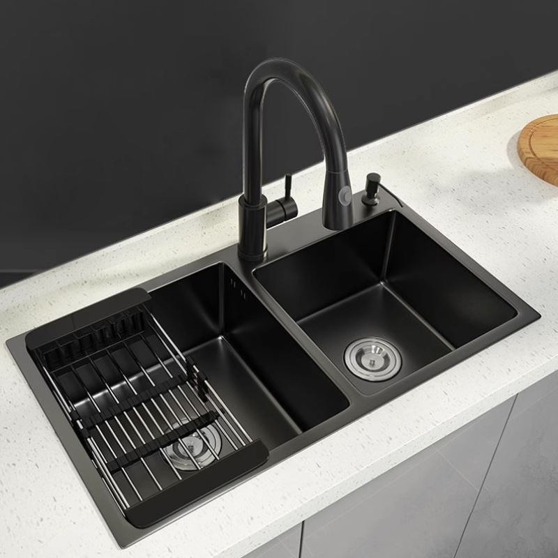 Wholesale Handmade Nano Black Stainless Steel Rectangular Undermount Double Bowl Kitchen Sink