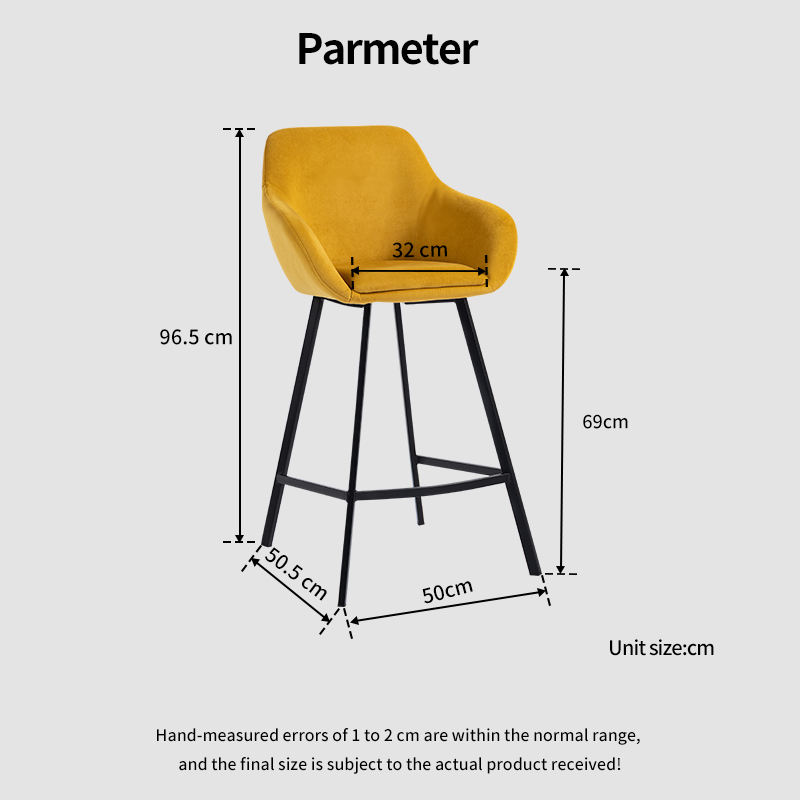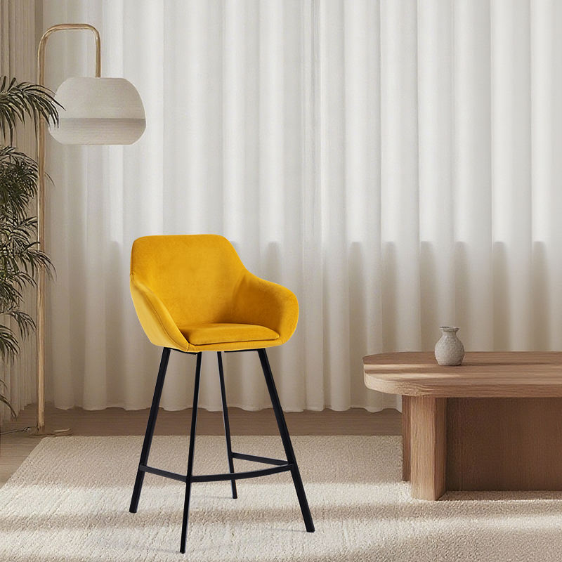 Modern Yellow Velvet Bar Stool with Black Metal Legs for Kitchen and Bars Dining Chair Living Room Leisure Chair