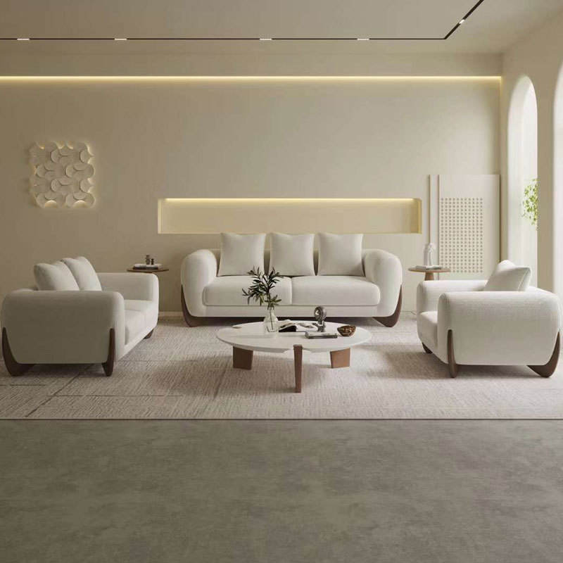 High Quality Sofa Set Luxury Couches Modern Fabric White Sofas with Solid Wood Leg for Home Living Room Furniture