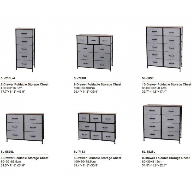 Dark Grey Fabric 10 Drawer Storage Tower Wardrobe Dresser Chest Bedroom Furniture