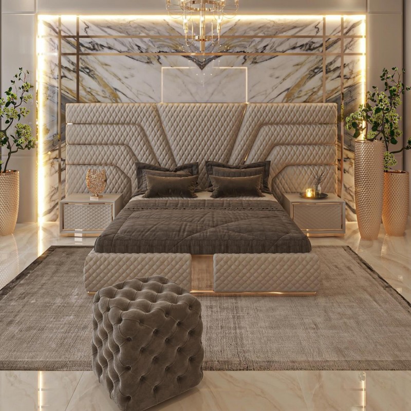 Luxury Hotel Queen Bed Frame Up-holstered Beds Frame Set Furniture Bedroom Wholesale