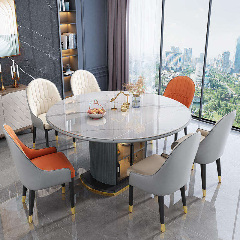 Luxury Round Table Space Saving Furniture Foldable Rock Slab and Dinning Table Set for 6
