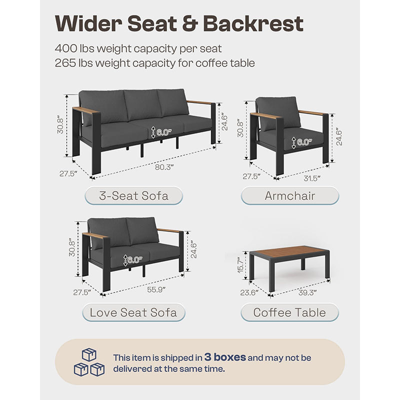 Modern Aluminum Waterproof Furniture Sofa Set Leisure Durable Garden 4 Piece Patio Conversation Sets