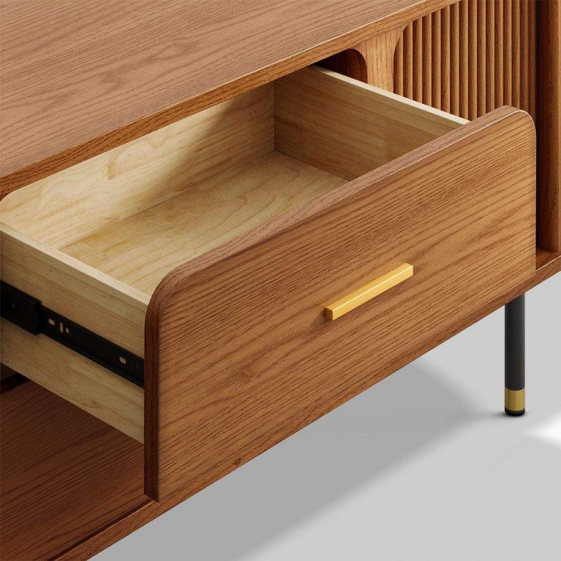 Luxury Solid Wood Tv Stand Oval Media Console Table Curved Edges Fluted Design Tv Cabinet Stand for Living Room