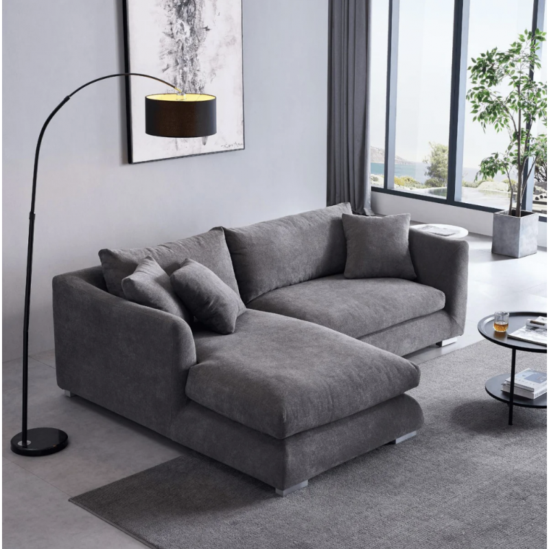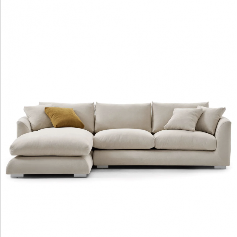 Modern Home Living Room Sofa Set Furniture White Linen Feather Cream Beige Fabric L Shaped Corner Modular Couches Sectional Sofa