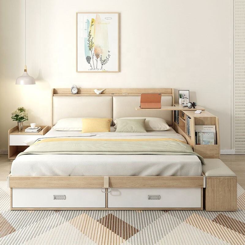 Room Modern Bedroom King Size Multifunctional Furniture Smart Queen Wooden Double Wood Comfort Bed Set With Drawers
